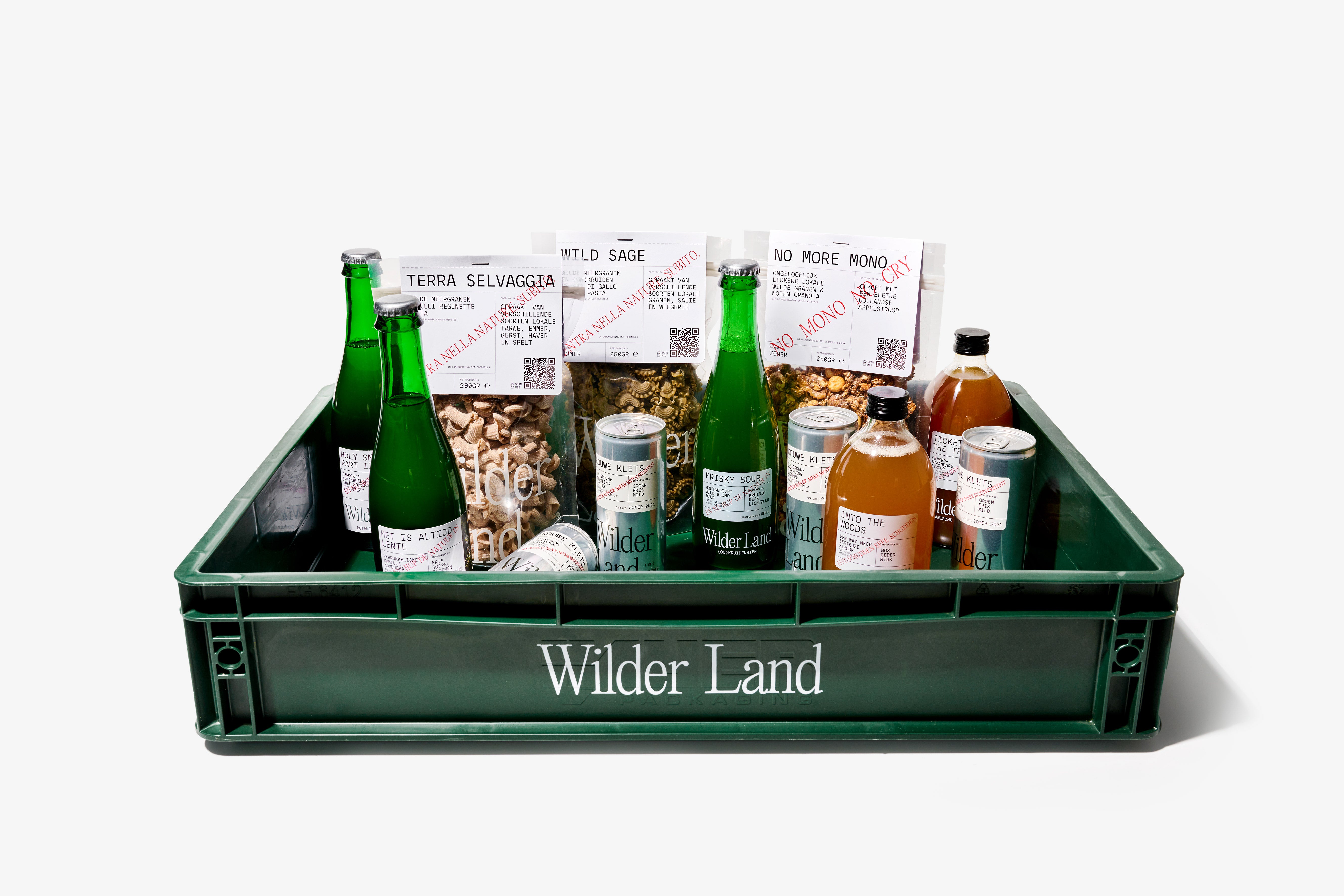 Een krat met al het lekkers uit Wilder Land. We proppen ‘m vol met culinaire biodiverse producten om je vingers bij af te likken. Zo kun je weer even vooruit met je wilde bestaan