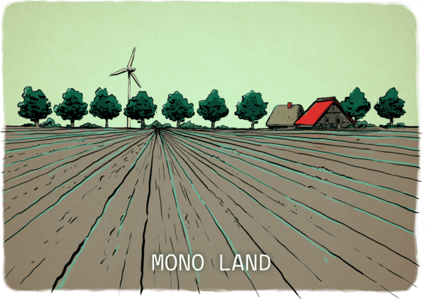 De natuur heeft niks aan een mono-landschap met bijvoorbeeld alleen maar kamille, mais, eiken, uien of gras. De natuur wil een landschap waar zoveel mogelijk door elkaar heen groeit. Een wilder land.